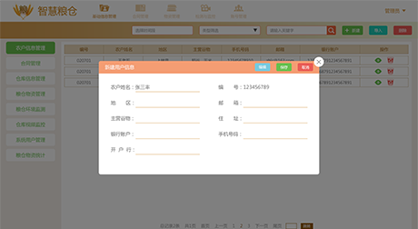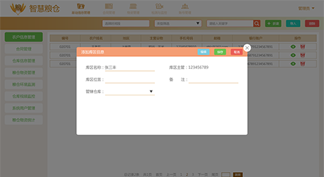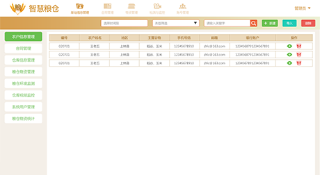 智慧粮仓监控管理系统结合当前先进的传感器技术、数字通信技术、自动化控制技术,将粮仓用湿度、温度、氮浓度传感器安装于粮仓空间,实现对粮仓内部温度、湿度的、氮浓度的实时监测。并对粮库设备(如排气扇等)进行控制,从而实现对粮仓24小时不间断的全程监测与调控。